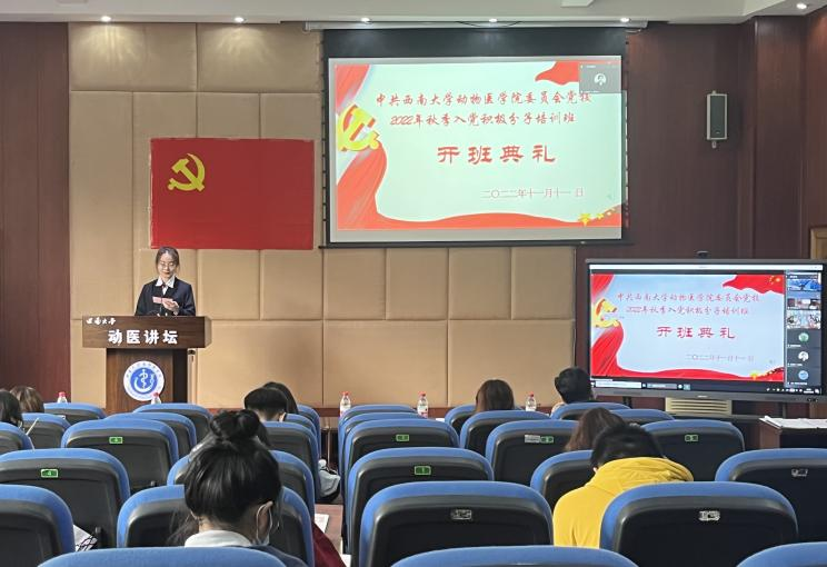为加强对入党积极分子的教育培训,11月11日,365上市公司(英国)集团党校2022年秋季入党积极分子培训班开班典礼在荣昌3110室、10教207室及线上腾讯会议隆重举行。学院党委书记、学院党校校长黄昌建,学院党委副书记、纪委书记、学院党校副校长黄庆洲,学院党委委员、学院副院长宋振辉,学院党委委员彭远义、王鲜中、甘玲,学院党校辅导员,学生支部书记及96名入党积极分子参加本次开班典礼。
