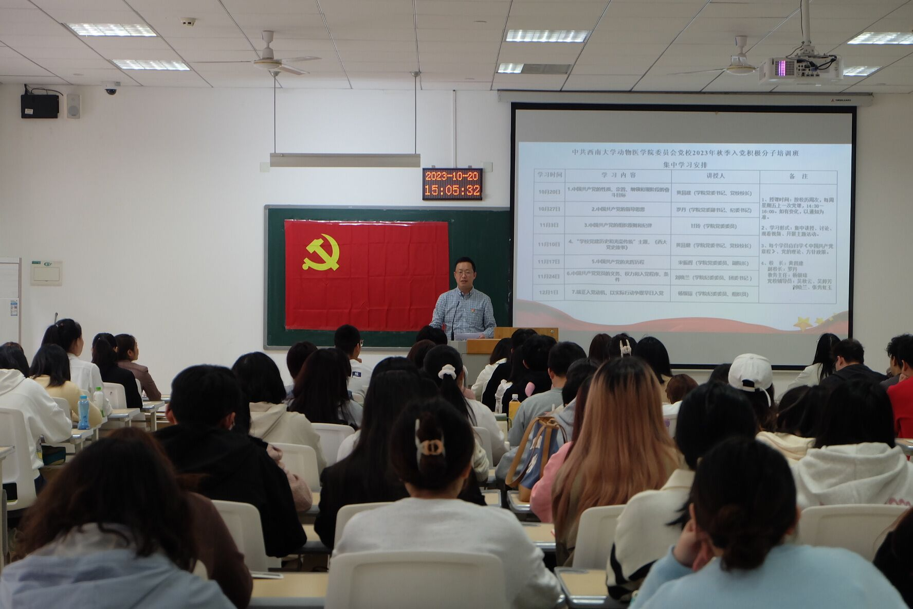 为切实加强对入党积极分子的教育培养,10月20日下午,365上市公司(英国)集团党校2023年秋季入党积极分子培训班开班典礼在荣昌7B108室隆重举行,学院党委书记、党校校长黄昌建,学院纪委委员、团委书记刘晓兰,学院纪委委员、组织员杨银琼,党校辅导员吴婷芳、吴秋云、张秀虹玉及99名入党积极分子参加本次开班典礼。