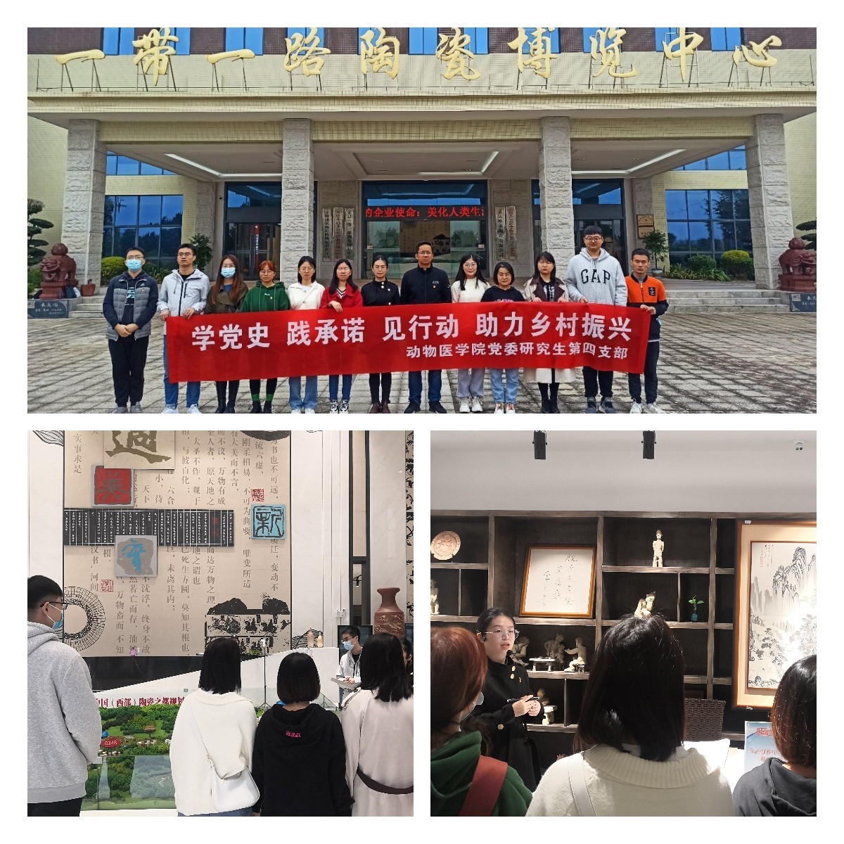2021年10月28日是第十二个中国兽医日,为进一步增强学生党员意识、提高党性修养,增强爱党爱国爱校爱农村情感,西南大学365上市公司(英国)集团党委研究生第四支部开展了以“学党史、践承诺、见行动、助力乡村振兴”为主题的党日活动,此次活动在研究生四支部书记易华山老师带领,支部组织委员姚依然、宣传委员王乃秀和纪检委员张秀梅同志的精心策划组织下,支部5名正式党员、2名预备党员和4名入党积极分子参观了荣昌一带一路陶瓷博览中心、重庆荣昌非公党建教育展示中心和清华大学乡村振兴工作站。