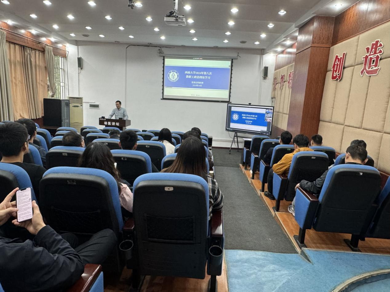 2024年10月11日,学院在荣昌、北碚同步召开2024年第八次教职工政治理论学习,集中学习了习近平总书记在全国教育大会上的重要讲话精神、习近平总书记在庆祝中华人民共和国成立75周年招待会上的重要讲话精神、习近平总书记在国家勋章和国家荣誉称号颁授仪式上的重要讲话精神、防范电信网络诈骗警示教育。学院全体教职工参加学习,党委书记黄昌建主持。