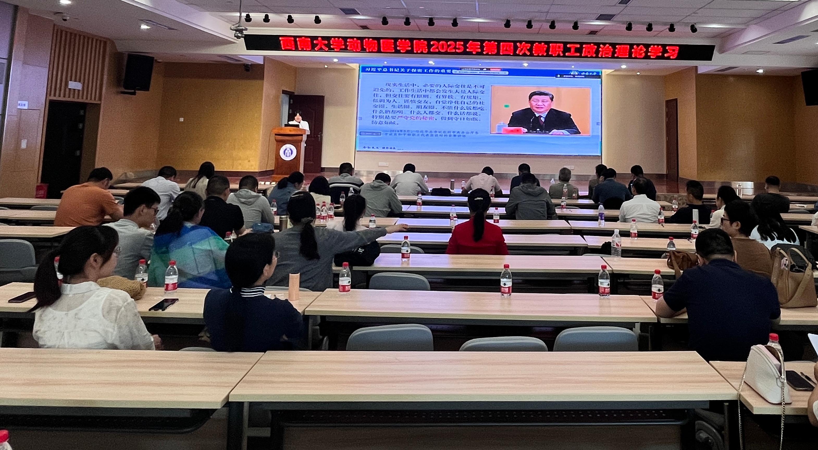 会上,学院党委副书记、纪委书记罗丹带领全体教职工学习了习近平总书记关于保密工作的重要指示精神,强调保密纪律和保密意识,提高政治觉悟。随后,全体教职工集中学习习近平总书记在贵州、云南考察时对开展深入贯彻中央八项规定精神学习教育发表的重要讲话精神,全体教职工要以优良作风站稳讲台、做好科研、服务社会。紧接着,会上集中学习中央八项规定及其实施细则精神,从三个方面进行了重点学习。全体教职工学习《教育强国建设规划纲要(2024—2035年)》,《纲要》坚持远近结合,分2027、2035年“两步走”,全体教职工对教育强国建设目标认识更深入、奋斗更明确。会后,全体教职工自学2025年春季全国高校消防安全公开课视频,提升消防安全意识,筑牢安全防线。