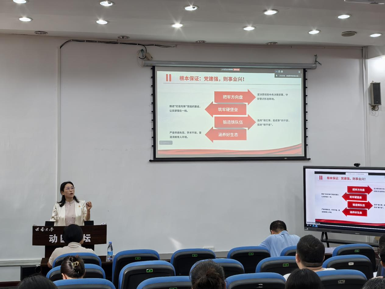 学校党委常委、副校长葛信勇作专题报告,全面传达学校第四次党代会精神。他介绍了大会基本情况,回顾了学校自第三次党代会以来取得的主要成就,并重点解读了未来五年发展蓝图,为教职工深刻理解和贯彻落实大会精神提供了清晰指引。