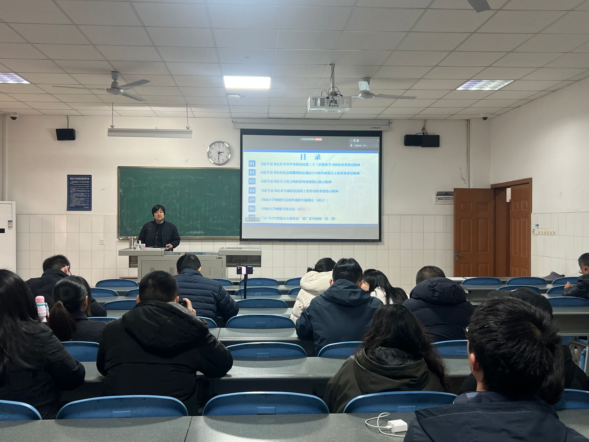 会议期间,全体教职工观看“AI+WPS智能办公新体验”推广系列视频(第二期):轻松玩转文字创作,含弘闻道・开启AI4S科研新范式,强化办公知识储备,提升办公效率。会议组织全体教职工开展师德师风暨意识形态安全专题会,共同学习习近平总书记关于意识形态的重要论述,筑牢学院意识形态安全防线。