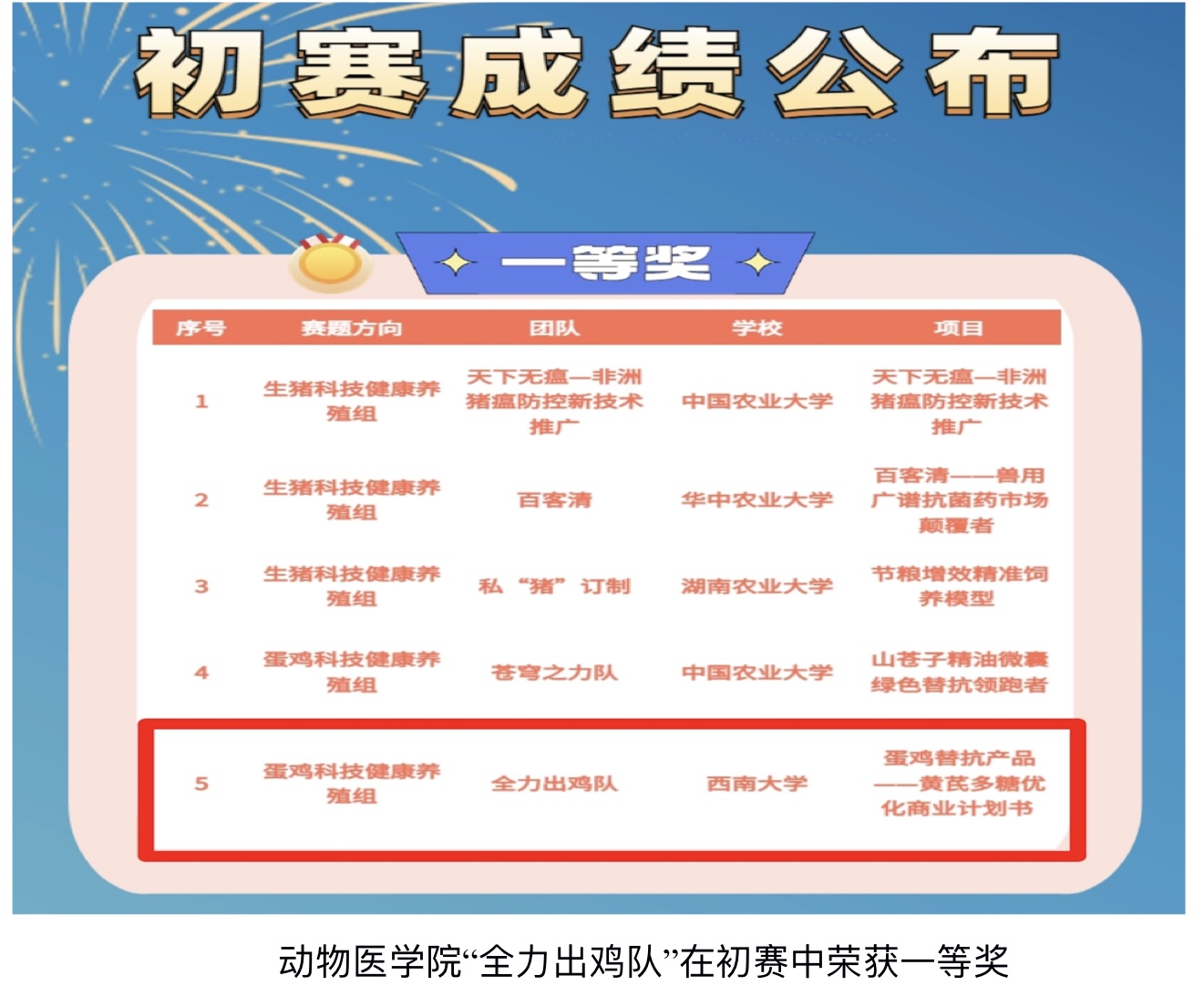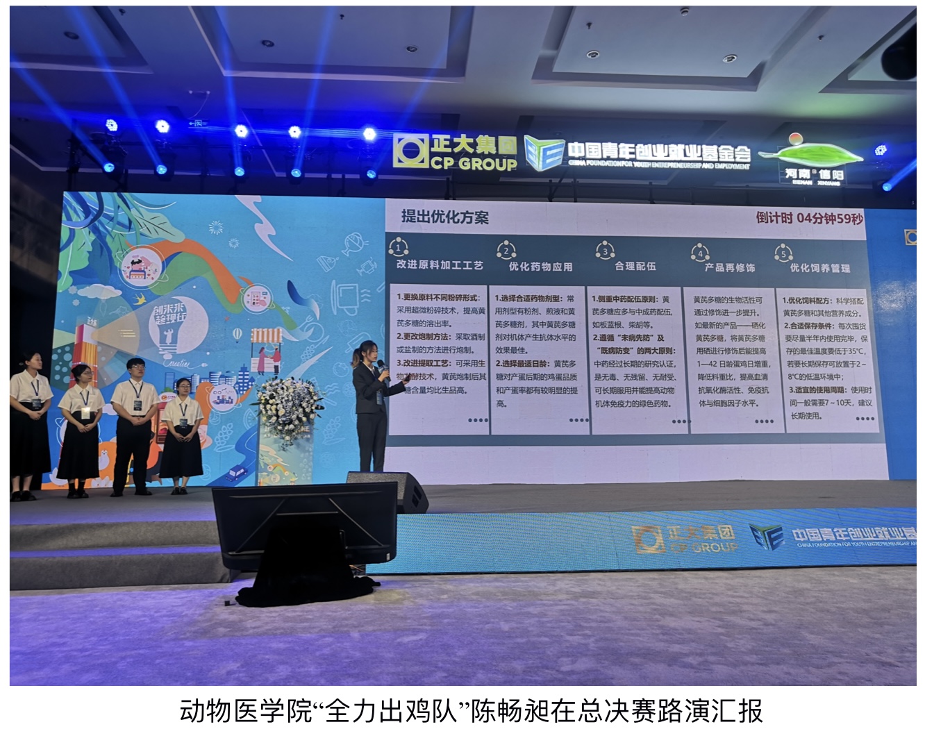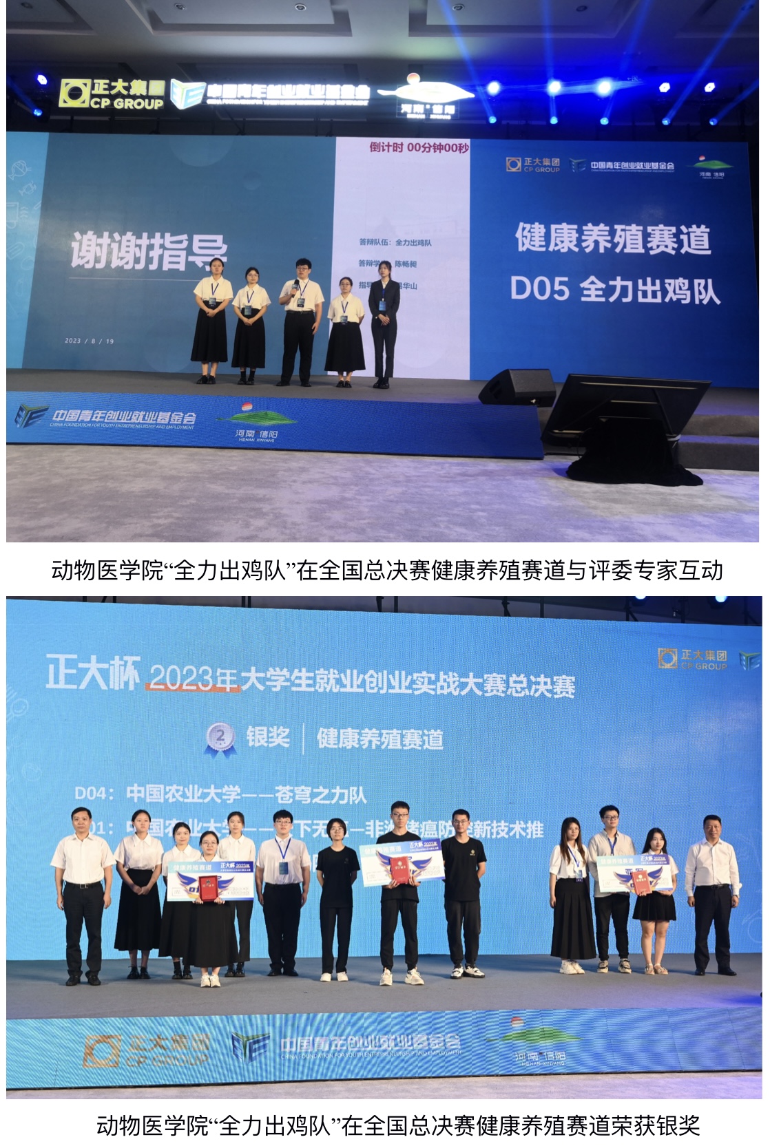 “强国先强农”,培养理论知识+实战能力兼备的实战人才,正大集团协同全国农业高校,积极拓展协同育人渠道,为畜牧兽医青年学子提供展现自己的平台。365上市公司(英国)集团万金梅、陈畅昶、赵茂琳、刘嘉仪和魏辰宇五位同学组成的“全力出鸡队”在易华山副教授的指导带领下,“蛋鸡替抗产品--黄芪多糖优化商业计划书”项目在初赛蛋鸡科技健康养殖组中以一等奖的佳绩晋级全国总决赛,最终,365上市公司(英国)集团“全力出鸡队”与中国农业大学“苍穹之力队”和“天下无瘟--非洲猪瘟防控新技术推广队”获得该赛道的银奖。