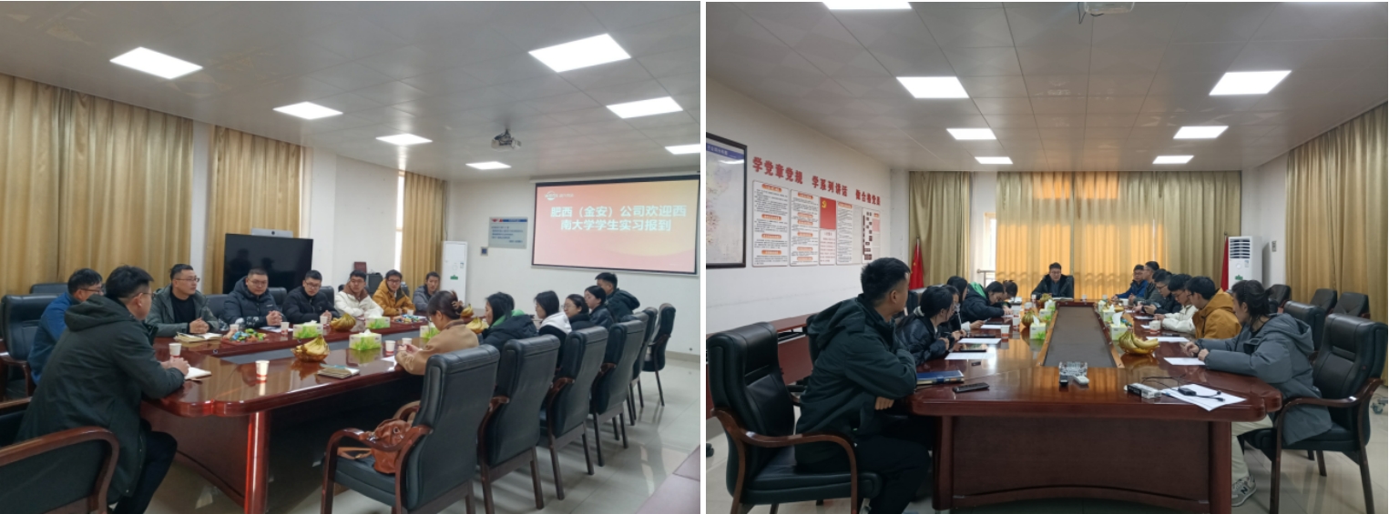 汇集社会资源、促进高素质专业人才培养质量。经学院与温氏集团(合肥温氏和芜湖温氏)双方关于学生开展教学实习相关事宜等进行沟通与协商,于2024年2月26日13名同学从各地齐聚安徽温氏,27日上午,举行了西南大学实习学生座谈会,出席会议的有合肥温氏经理李庆林、王文豪,办公室主任杜杰、畜牧兽医师高文龙、人力资源刘凤;芜湖温氏经理陈昌林、李义杰,办公室主任陈国、人力资源戴英等;会议分别由合肥温氏办公室主任杜杰、芜湖温氏办公室主任陈国主持。