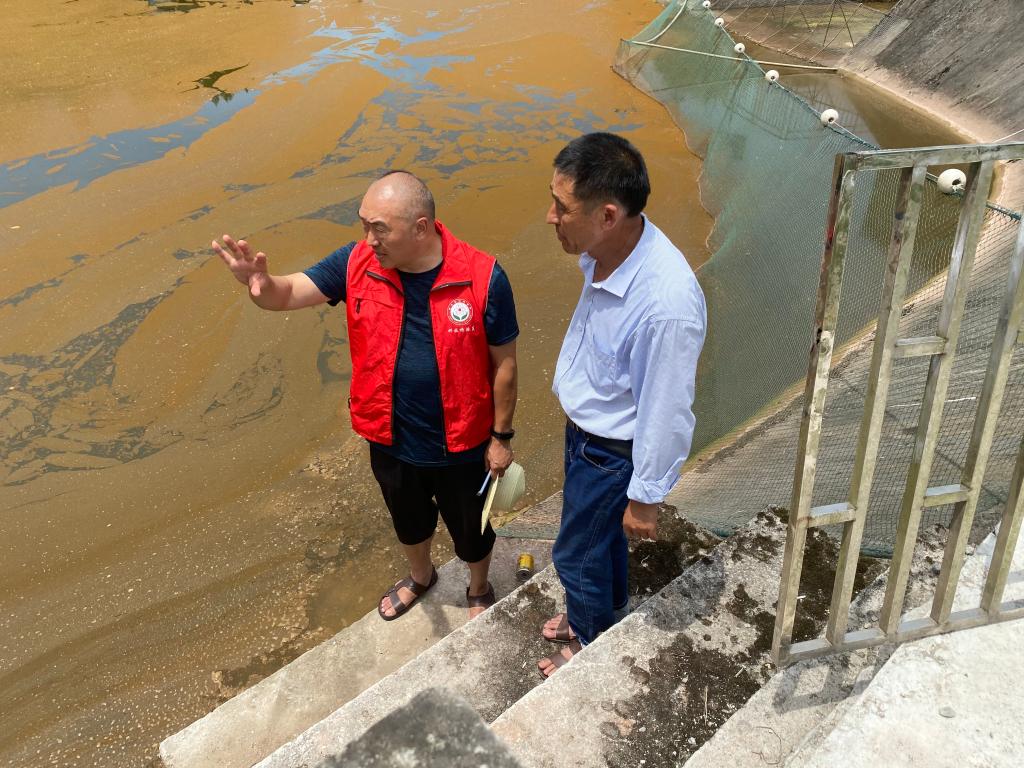 专家在养鱼场做技术指导