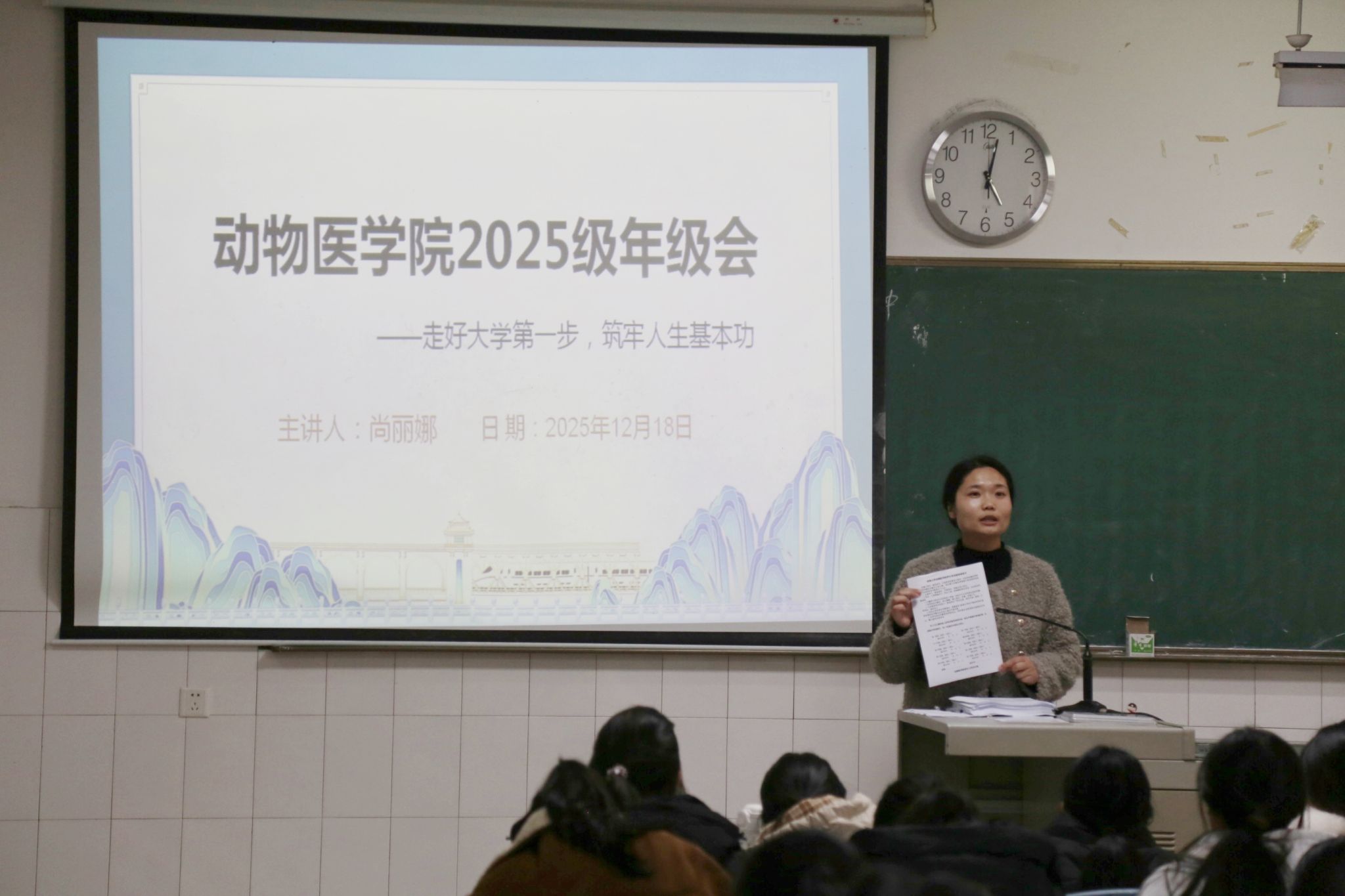 为扎实推进学风建设,强化新生考风考纪教育,引导2025级本科新生树立正确的学习观和考试观,12月18日下午,365上市公司(英国)集团2025级辅导员尚丽娜在荣昌校区5303和2111教室组织召开“走好大学第一步,筑牢人生基本功”主题年级会。学院2025级370余名本科生参加。