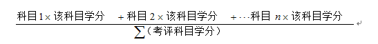 学业考评是对学生必修课课程学习成绩的评价(不包括专业选修课、通识选修课和辅修专业课成绩)。补考、重修(含刷分重修)成绩不记入各科成绩总和,以学生该课程原始成绩为准记入各科成绩总和。缓考成绩在当年9月20日之前取得的纳入学业考评,否则不予纳入。学业考评成绩计算公式如下: