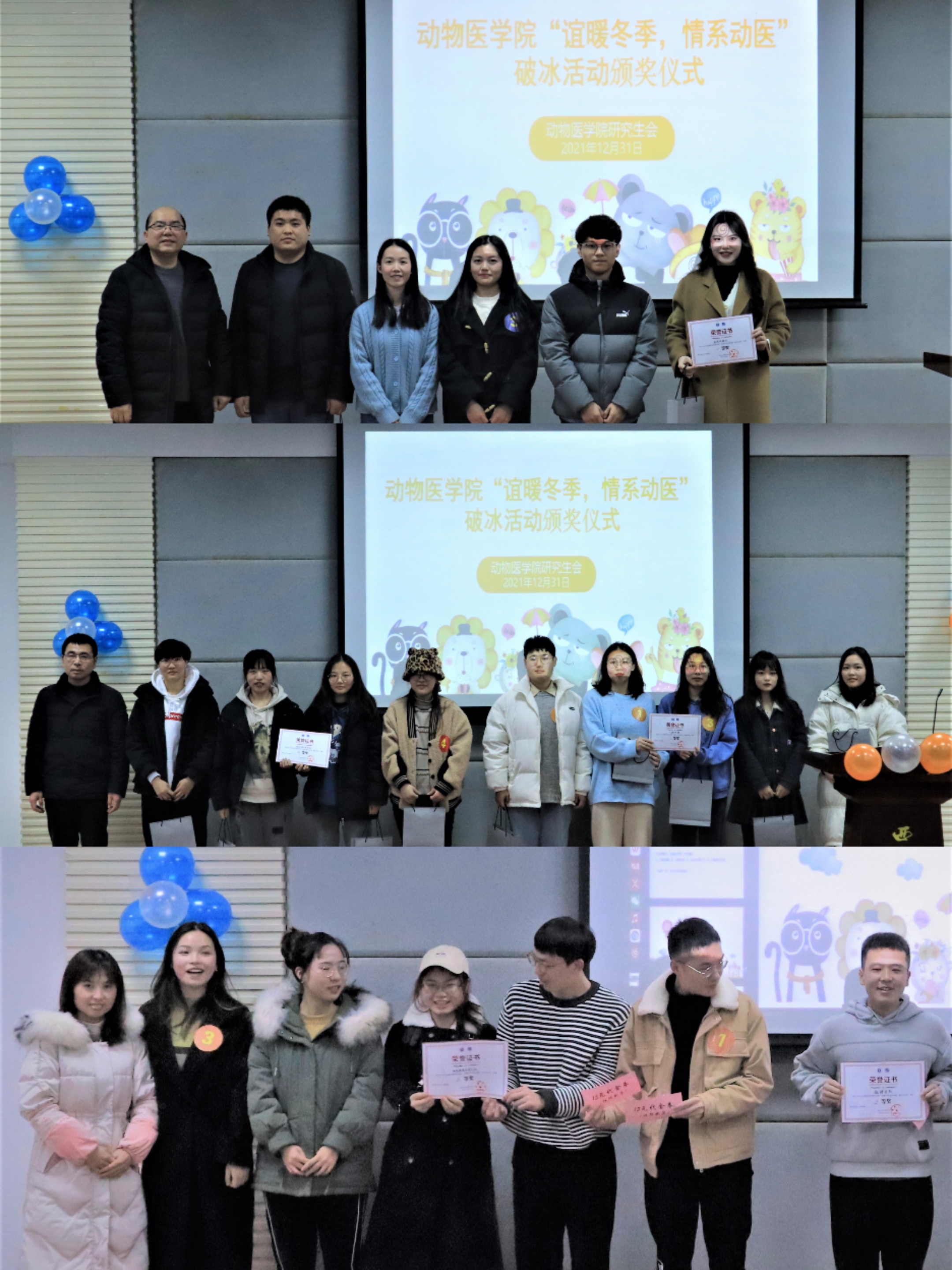 为了更好促进各年级研究生之间的交流,丰富研究生校园文化生活,营造良好学学风术氛围,2021年12月31日,西南大学365上市公司(英国)集团第一届特色迎新——“谊暖冬季 情系动医”破冰活动于动物医院报告厅成功举办。学院党委书记黄昌建、副院长方仁东、党委副书记黄庆洲、副院长宋振辉、团委书记刘晓兰、研究生辅导员李林园、吴秋云出席了活动。本次活动共有18支队伍参赛。