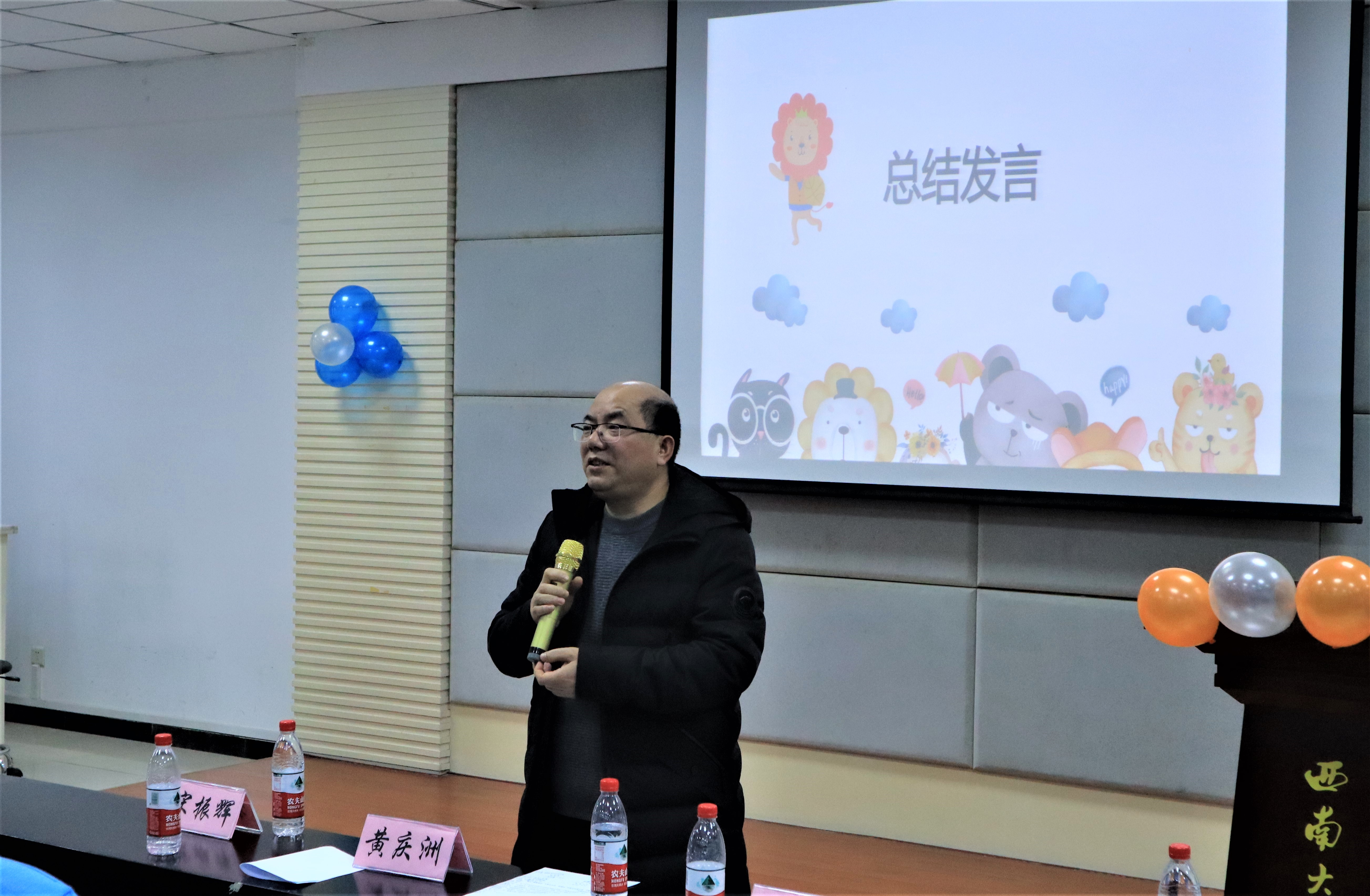 学院党委副书记黄庆洲对本次活动做总结讲话,他从活动思想高度、同学参与度、内容专业及丰富度、活动现场同学热情度等多个角度进行了总结,强调竞赛项目涉及到动物医学专业知识与党建基础知识,既展现了学院的专业特色,又充分契合了学校党建与事业融合发展新要求,相信本次活动的成功开展,一定会为接下来的研究生生活增加新的激情和动力。