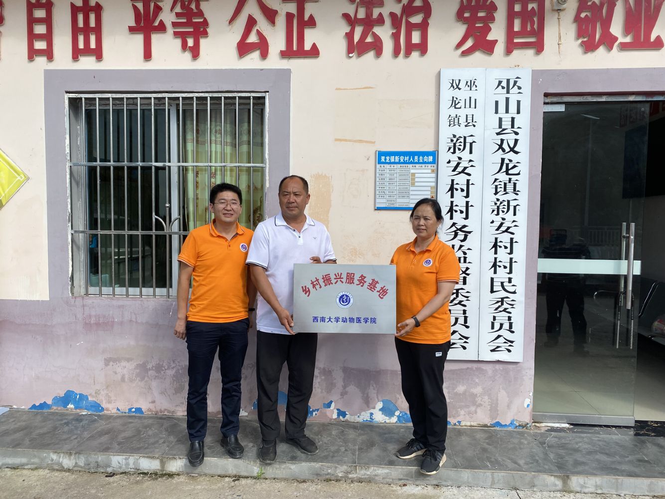 服务脱贫乡村养殖产业,助力乡村振兴。为巩固拓展脱贫攻坚成果实现同乡村振兴有效衔接,帮助脱贫后的巫山县双龙镇新安村畜牧业产业发展,学院将新安村确定为365上市公司(英国)集团“乡村振兴服务基地”,院长刘娟、中兽医系主任曹立亭为其授牌,以此建立长效合作机制,进一步将学院人才优势资源、科技创新资源服务重心下移,将专业优势资源转化为服务地方乡村振兴的新动能。