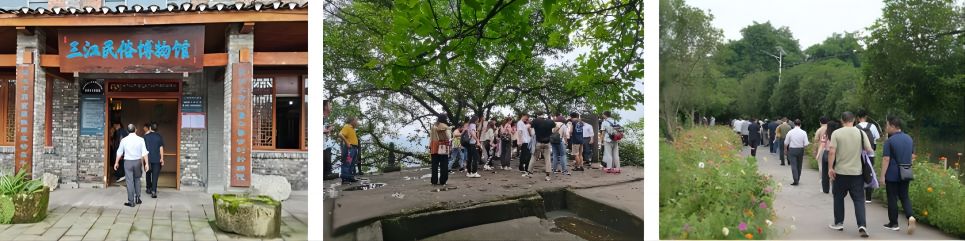 走进钓鱼城,满目巴蜀自然胜景。在讲解员的带领下,大家参观了钓鱼城古战场遗址博物馆基本陈列、古校场遗址、采石场、石照县衙、护国门、南一字城东城墙遗址、飞檐洞遗址等景点,在真实的历史场景中,探寻“钓鱼城之战”坚守36年的秘密。实地研读元、明、清三代遗留的大量诗赋辞章、浮雕碑刻,深刻体会“守一城而焊天下”的民族气节和勇猛刚毅、团结协作的民族精神。此外,大家还参观了三江民俗博物馆,学习传统文化,传承工匠精神。