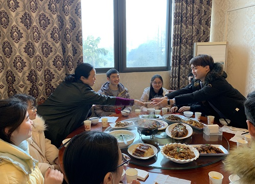 中午的餐桌上除了热气腾腾的饺子外,还有丰盛的饭菜,大家围坐在一起把酒畅欢,阔谈新愿。午饭期间,党政领导给同学们发了新年慰问红包。留校学生激动地说,在没有家人陪伴的异地他乡,和老师们同学们过这样的春节,兴奋不已。