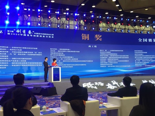 11月2-5日,由共青团中央、人力资源社会保障部、农业农村部、商务部、国务院扶贫办等共同主办的第七届“创青春”中国青年创新创业大赛全国决赛在哈尔滨举行,本次大赛首次采用视频路演和线上答辩的形式,以分组比赛的方式进行,通过项目陈述、答辩和终极问答(阐述评委抽取的关键词),我院学生团队最终取得全国决赛铜奖的优异成绩。