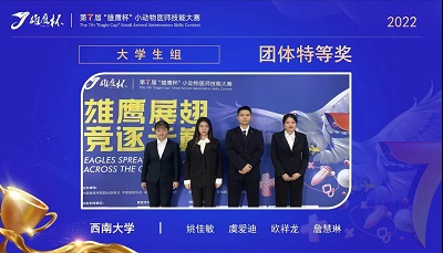 最终,我院学子不负众望,再次夺得第7届“雄鹰杯”小动物医师技能大赛大学生组“团体特等奖”。取得了在91支高校参赛队伍中总成绩排名第二,各项比赛项目成绩小组第一的傲人成绩。其中,姚佳敏同学获得“兽医新星奖”;胥辉豪、郑小波、李前勇老师获得“优秀辅导教师特等奖”;我校获得“最佳组织奖”。同时,我院也是全国唯一连续四届斩获该赛事特等奖的高校,再次彰显出我院雄厚的师资实力以及人才培养质量。