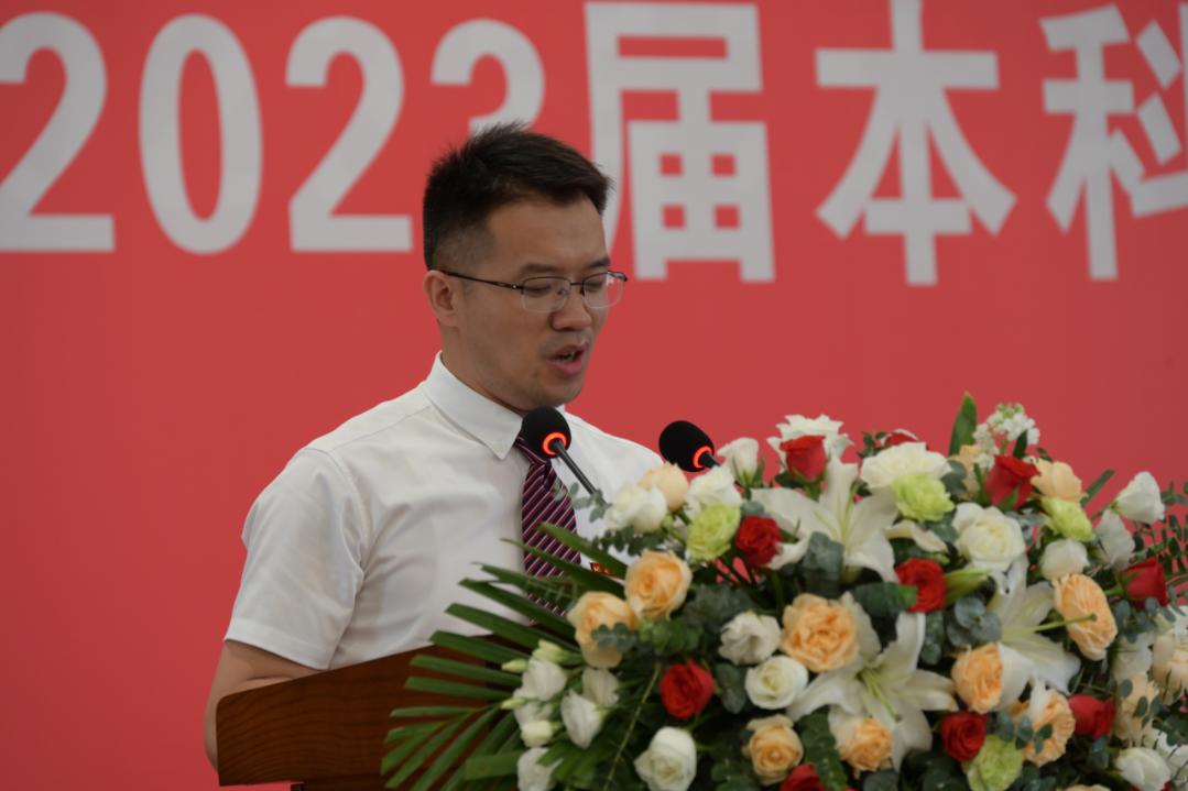 在碚优秀毕业生张明杰同学发言,他讲述自己在大学四年成长的点点滴滴,以及在校期间的成长经历,感恩母校和学院的辛勤培育,并寄语同学们前程似锦,永葆初心!