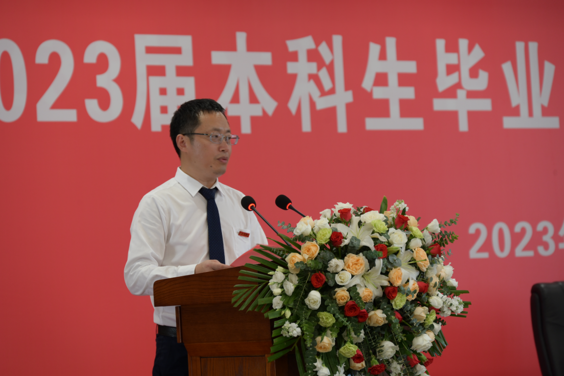 学院院长方仁东代表学院表达了对毕业生在专业学习和研究中所获进步与成就的欣慰之情,在最美的青春年华,奏响了激荡人心的胜利之歌。同时深情寄语毕业生,作为新时代的追梦者,应将人生梦和中华民族伟大复兴的中国梦紧密相连,要用海纳百川的气度博彩他人的长处,宽容他人的缺点,持有旺盛的求知欲和创新精神,在日益激烈的社会竞争中与时俱进,迈向成功。