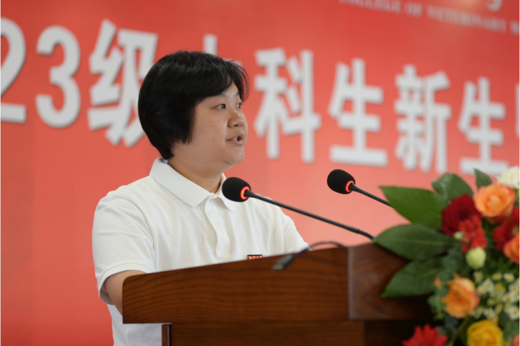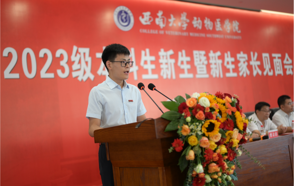 胡雨辰同学代表新生发言,深情感谢了为迎新工作辛勤付出的老师和学长学姐们,并表达了他与农学的羁绊——因为来自大山,所以更想为国家的乡村振兴贡献青春力量的坚定理想。