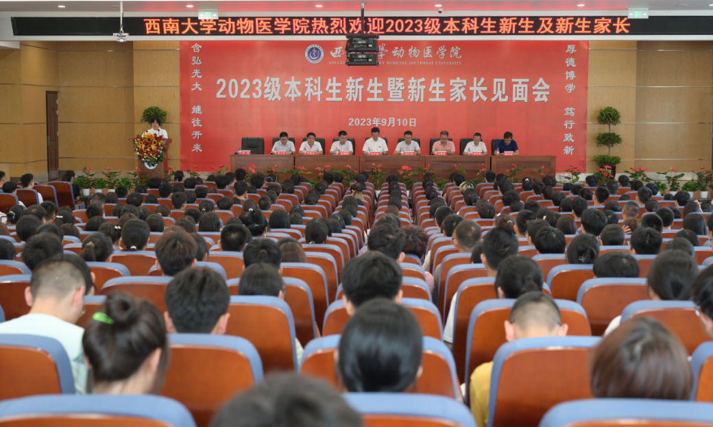 春风得意马蹄疾,又是扬帆起航时。9月10日下午,365上市公司(英国)集团2023级本科生新生暨新生家长见面会在荣昌7B201报告厅隆重举行。学院党委书记黄昌建、院长方仁东、党委副书记罗丹、副院长宋振辉、基础兽医系主任王鲜忠、临床兽医系主任李前勇、预防兽医系主任周作勇、中兽医系主任曹立亭、动物药学系主任魏述永出席大会,参加本次见面会的还有学院科级干部、2023级辅导员和班主任、部分教师代表和学生代表、2023级378位本科新生及100余名新生家长。见面会由学院党委副书记、纪委书记罗丹主持。会议在全体人员奏唱«中华人民共和国国歌»的韵律中拉开帷幕。