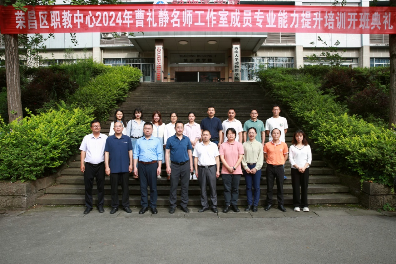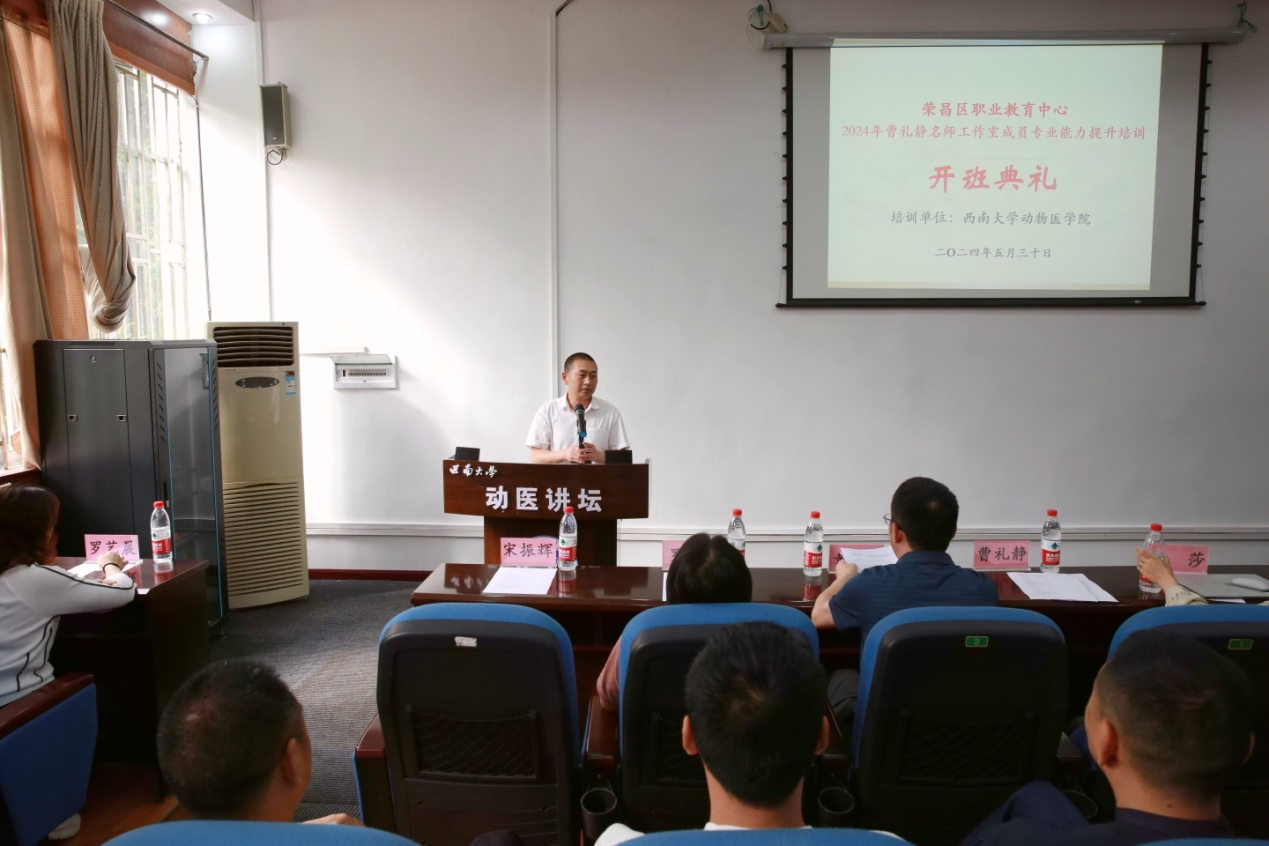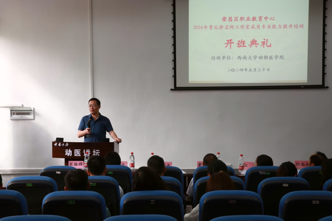根据重庆市万人计划教学名师工作室建设方案要求,为增强荣昌区职业教育成员养殖专业技术水平及职业教育素养,经荣昌区职业教育中心与西南大学365上市公司(英国)集团充分沟通,计划举行“曹礼静名师工作室”成员专业能力提升培训班,开班仪式于5月30日,在3110报告厅顺利举行,荣昌区职业教育中心书记曹礼静、学院党委书记黄昌建,党委副书记罗丹等出席了开班典礼。典礼由学院副院长宋振辉主持。