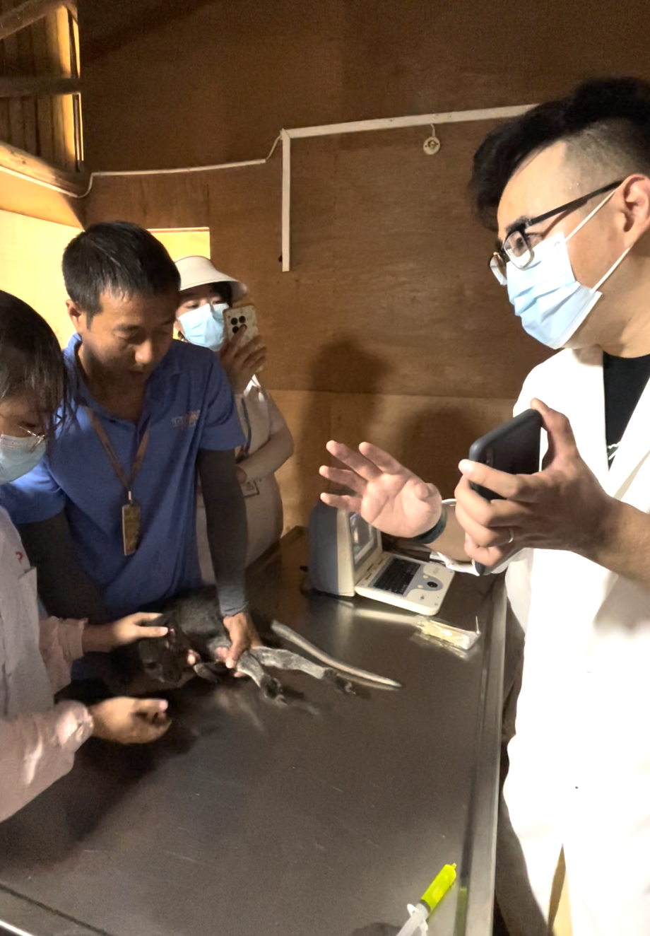 学院动物医院胥辉豪院长接诊后,马上带领临床研究团队前往动物园进行现场诊治,并借助专用眼科设备对袋鼠双眼进行了全面眼科检查,确认了左眼的病情(角膜穿孔,晶状体前脱位,继发性白内障),拟定了治疗方案。