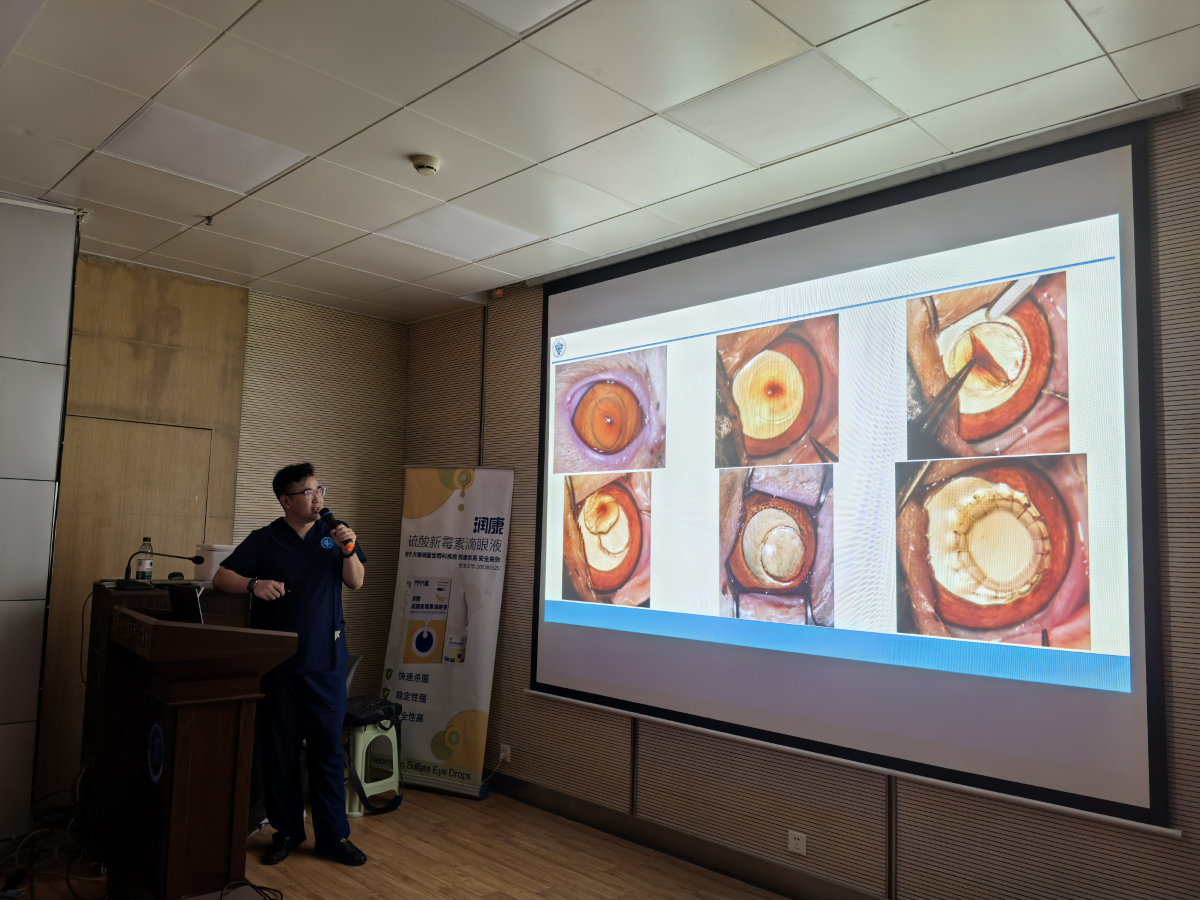 本次培训吸引了来自全国100余名临床工作者的踊跃报名。胥辉豪进行了小动物角膜疾病、显微手术技术以及眼部超声的专题培训,讲授了常见角膜疾病的理论知识,现场指导了学员显微镜外科缝合、眼部超声等技术实际操作,并在整个培训过程中与学员们开展了广泛的互动与交流。