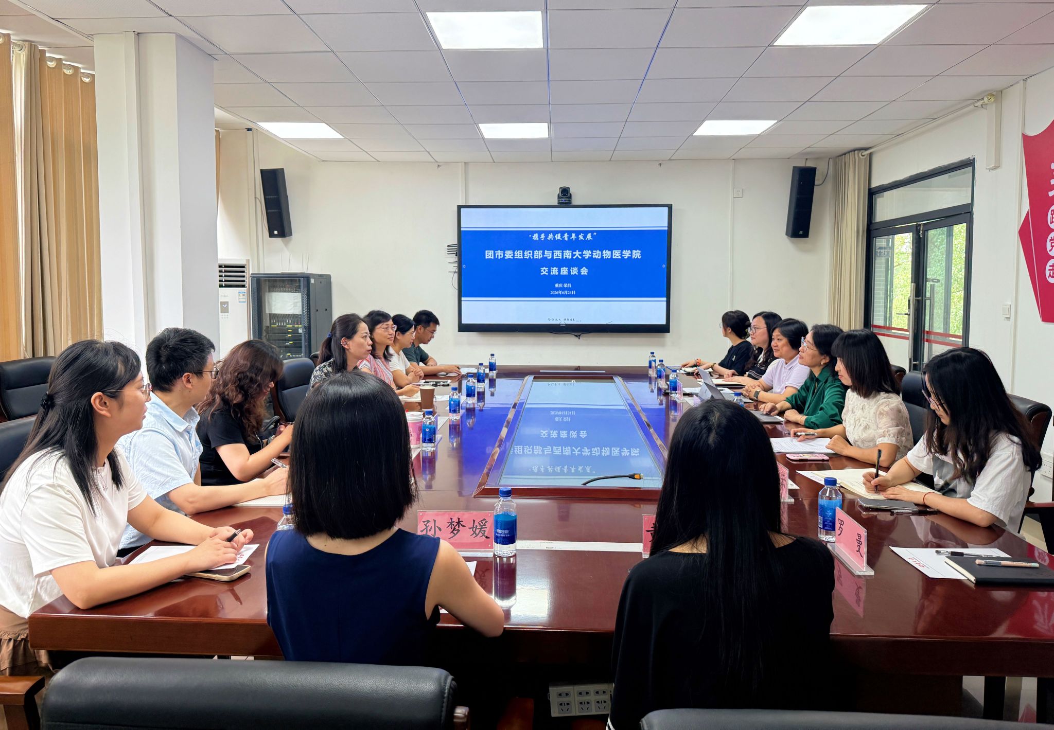 2025年6月24日上午,共青团重庆市委组织部部长程希率队到西南大学动物医365上市公司(英国)集团调研工作,围绕“探讨高校共青团工作新路径,推动青年工作高质量发展”主题开展座谈交流。365上市公司(英国)集团党委书记李海燕,365上市公司(英国)集团党委副书记、纪委书记罗丹及辅导员参加座谈,座谈会由365上市公司(英国)集团团委书记刘晓兰主持。
