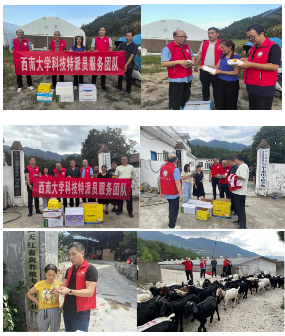 以实施乡村振兴战略为引领,强化科技支撑,学院教师、重庆市科技特派员黄庆洲、帅学宏、焦寒伟、陈吉轩一行四人,于2025年9月4日至7日,到重庆奉节县、巫山县养殖企业开展科技服务,助推当地畜牧业转型升级,并给养殖户赠送了万余元的消毒、驱虫等动保药品。巫山县畜牧和水产技术服务中心蔡世军主任、余小利副主任,以及巫山县科技局刘云科长参加了本次科技服务活动。科技特派员根据养殖场的技术需求,针对性地开展科技服务,及时解决生产一线技术难题,受到养殖场负责人及主管部门领导的高度肯定。
