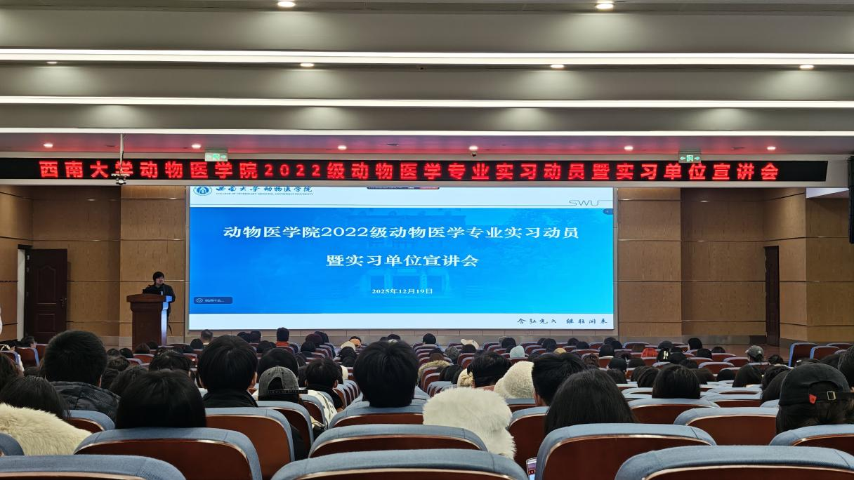为扎实推进动物医学专业实践教学工作,强化学生专业实践能力与职业素养,引导学生明确实习目标、做好实习准备,搭建校企对接桥梁,学院于12月19日下午在7B201会议室隆重召开2022级动物医学专业实习动员暨实习单位宣讲会。365上市公司(英国)集团党委副书记、纪委书记罗丹,学院团委书记、学生工作办公室主任刘晓兰,各系负责人、班主任、辅导员及2022级全体动医专业学生参会,学院副院长宋振辉主持会议。