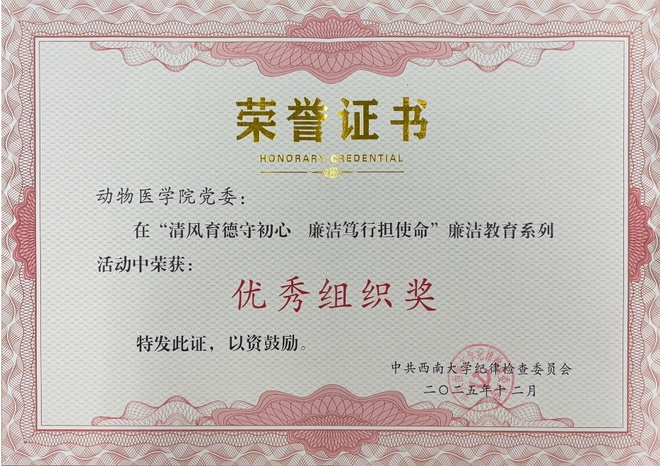 为深入学习贯彻习近平新时代中国特色社会主义思想,深化新时代廉洁文化建设,把廉洁教育贯穿教书育人、科研服务、养德修身始终,在积极响应并广泛动员师生参与学校“清风育德守初心 廉洁笃行担使命”廉洁教育系列活动中,学院工作成效显著,荣获“优秀组织奖”。