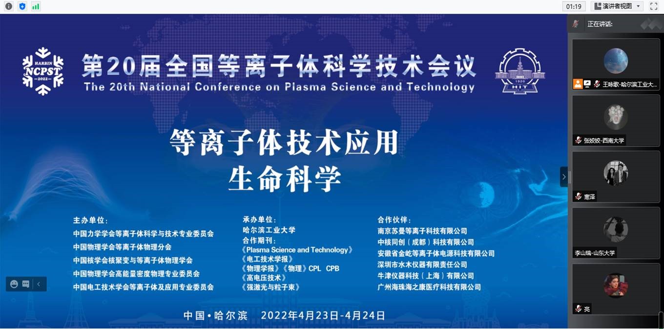 2022年4月23日至24日,由中国力学学会等离子体科学与技术专业委员会、中国物理学会等离子体物理分会、中国核学会核聚变与等离子体物理学会、中国物理学会高能量密度物理专业委员会、中国电工技术学会等离子体及应用专业委员会等联合主办,哈尔滨工业大学承办的“第20届全国等离子体科学技术会议”在哈尔滨召开。受新冠肺炎疫情影响,本次会议以线上的方式举办。大会总共由12个专题分会场组成,全面展示了我国在等离子体科学技术各个领域所取得的成果及最新进展。