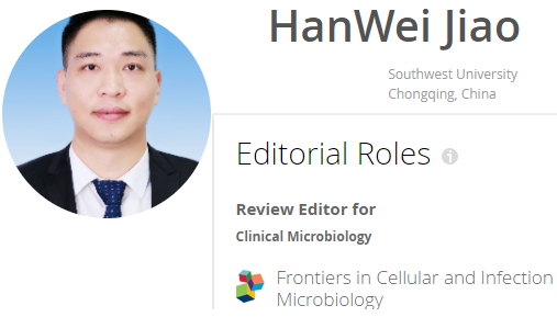近期,我院青年教师焦寒伟博士受邀担任国际知名学术期刊Frontiers in Cellular and Infection Microbiology的Review Editor(评审编辑),负责 Clinical Microbiology (临床微生物学)方面的组稿和同行评审工作。《Frontiers in Cellular and Infection Microbiology》期刊创刊于2011年,属于Frontiers 系列学术期刊,ISSN号:2235-2988,中文译作《细胞与感染微生物学前沿》,在免疫学和微生物学领域具有较大的影响力。