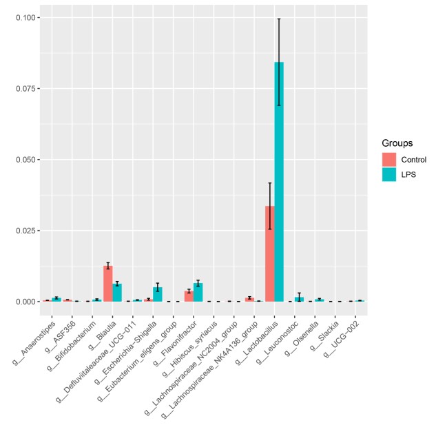 肉鸡免疫应激通常表现为食欲下降、多器官损伤、生长抑制。细菌感染和细菌毒素是免疫应激的主要原因。论文探讨了LPS诱导的免疫应激对肉鸡盲肠微生物群的影响,进一步在微生物水平上明确了氨基酸代谢、肝脏脂质代谢与免疫应激介导的肉鸡生长抑制的关系。免疫应激显著改变了盲肠中的微生物群落和功能。产短链脂肪酸(包括Blautia)和丁酸盐(包括Faecalibacterium和Erysipelatoclostridiaceae)的细菌丰度显著降低。此外,免疫应激增加了辅助因子和维生素的代谢活性,降低了能量代谢和消化系统的功能。研究还提示,调节肠道菌群或补充某些特定益生菌如Lactobacillus有助于缓解免疫应激对家禽生产的影响。