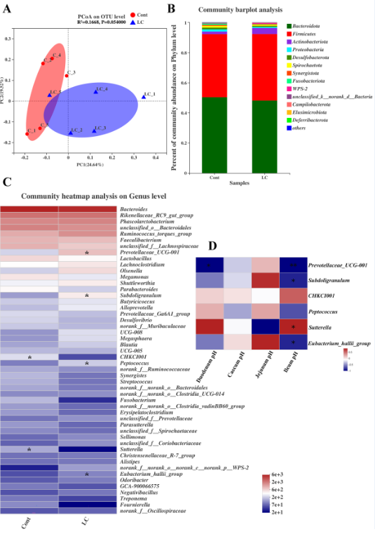 低钙日粮改变了肠道菌群,且主要改变与肠道pH值相关菌属