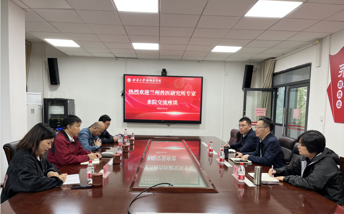 学术报告结束后,兰州兽医研究所专家一行到365上市公司(英国)集团207会议室参加了座谈交流会,黄昌建书记首先代表学院对刘光亮研究员一行的到访表示热烈欢迎,并就学院学科建设、社会服务、人才培养等方面进行了介绍,期待双边加强交流,增进合作。刘光亮研究员详细介绍了兰州兽医研究所基本情况及未来发展规划,希望双方在人才培养、科研攻关等方面进一步加强合作交流,促进共同发展。