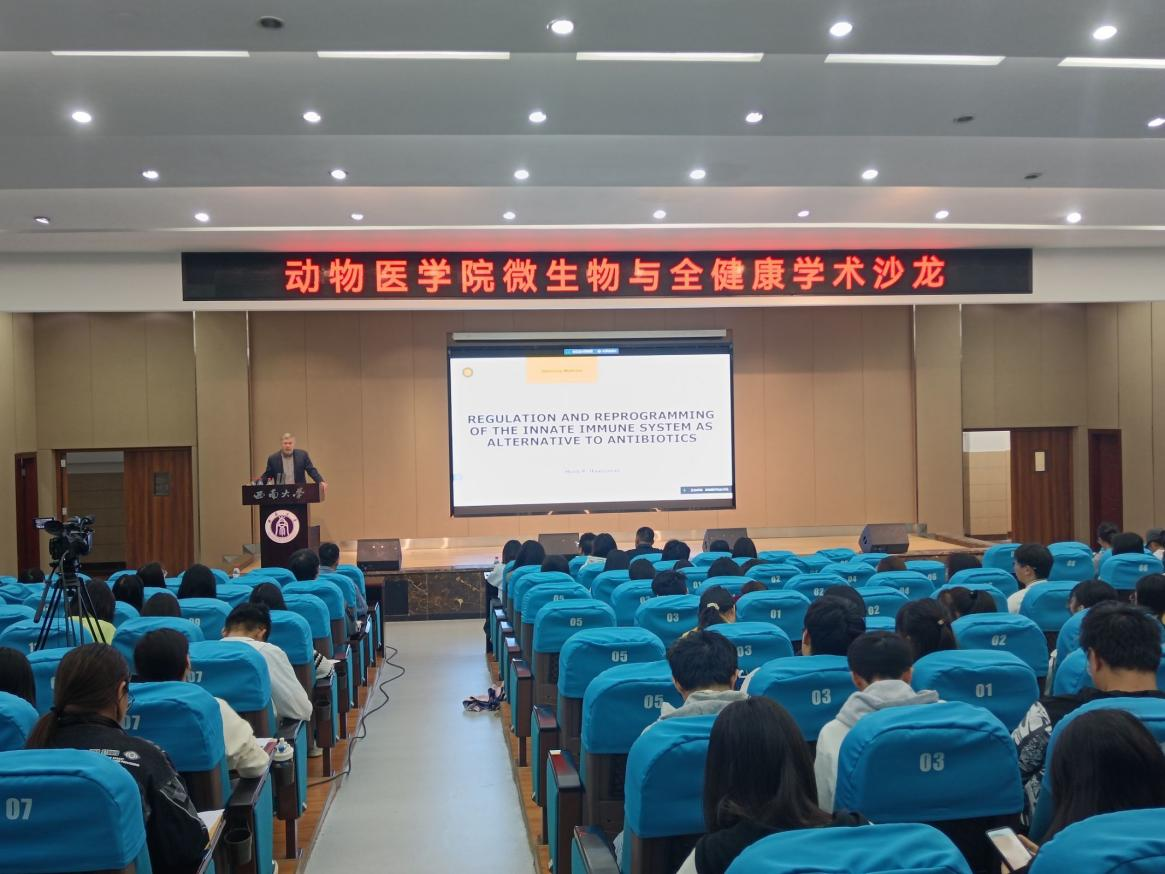 10月20日上午,荷兰乌特勒支大学兽医学院教授、博士研究生导师Henk P. Haagsman教授受邀来我院开展365英国上市集团,本次学术沙龙主要在荣昌校区2教211开展,由学院陈红伟副教授主持,学院部分教师,以及研究生、本科生100余人参加本次会议。