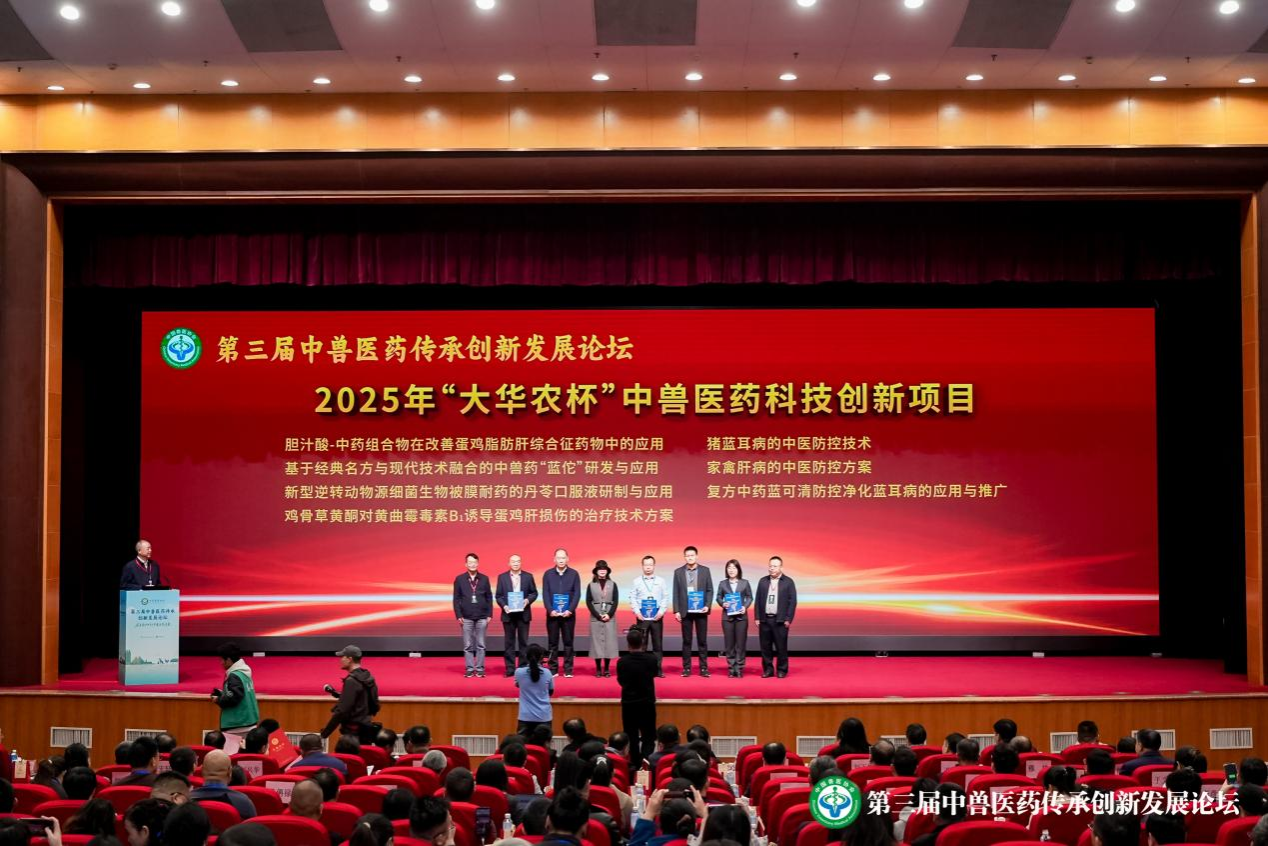 2025年11月13日至15日,由中国兽医协会主办的第三届中兽医药传承创新发展论坛在郑州黄河迎宾馆顺利举行。论坛以“在变局中共创中兽医药未来”为主题,围绕中兽医药在养殖场健康管理、疫病防控等领域的应用展开深入探讨,旨在推动畜牧业绿色转型与高质量发展。