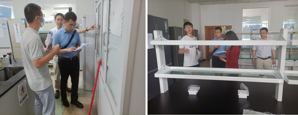 本次实验室安全检查主要围绕实验室中试剂使用及存放是否规范、仪器的使用记录是否规范、实验废弃物是否分类规范、实验室的卫生是否干净进行了全面排查。检查组对现场发现的问题进行了拍照与现场记录,并要求实验室安全责任人限期完成整改。本次检查还对上期检查出现的实验室安全问题进行了重点复查,确保实验室安全责任人进行整改。